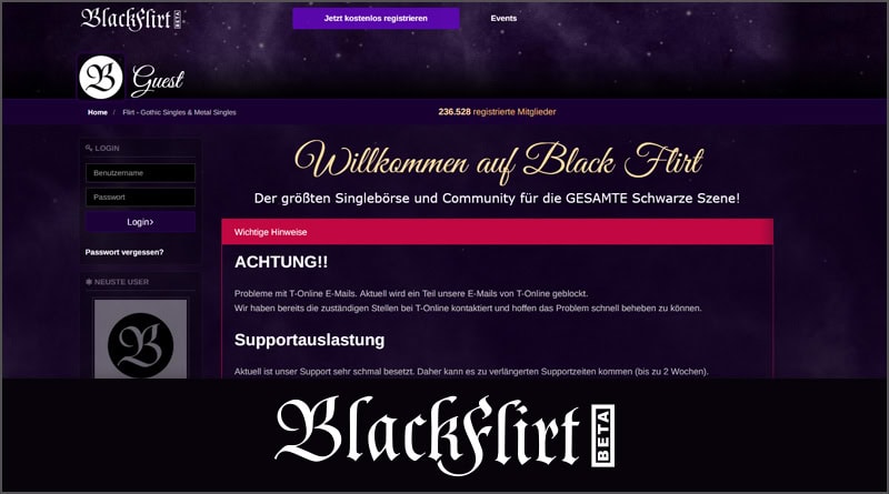 Hierbei handelt es sich um eine Webseite in der Kategorie Dating mit gemeinsamen Hobbys und Interessen. Gedacht ist die Plattform black-flirt.de für User, die schwarzen bzw. Gothic-Szene angehören. Das Licht der großen weiten Welt erblickte die Singlebörse 2006, also genau vor 15 Jahren.